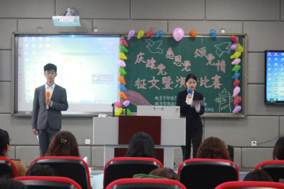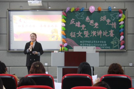 为庆祝中国共产党成立100周年,弘扬当代老员工的爱国主义精神,教育学部于2021年4月14日中午12:30在博雅楼B座201举行了“庆建党、感恩党、颂党情”征文暨演讲比赛。