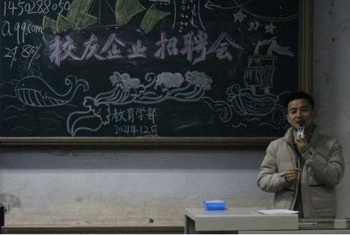 为充分利用员工资源,积极落实学部就业工作,我部于12月5日晚在一教楼202室召开了优秀员工企业招聘会。宜宾市叙州区创米教育培训学校董事长邓梦川及其教师团队进行了宣讲,学部2022届全体毕业生参与了此次招聘会。