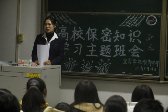 本次主题班会介绍了《保密法》以及相关案例,并要求各班组织学习《高校师生保密知识读本》,让同学们接受了一次深刻的保密教育。