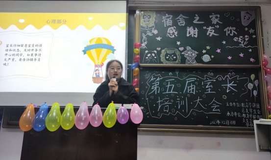 为加强寝室团结,引导员工积极创建“学习型”寝室,教育学部于2021年12月11日在一教202教室开展“宿舍之家,感恩‘友’你”第五届室长培训大会。青年志愿者队队长林娜、学习部部长黎彦均,生卫部王婷,新闻部部长杨雨洁、副部长阳泳旭,组织部副部长吴丹,文体部部长冯缘,学权部部长梁婷、副部长熊莘踦和20级21级各寝室长参加了这次活动。