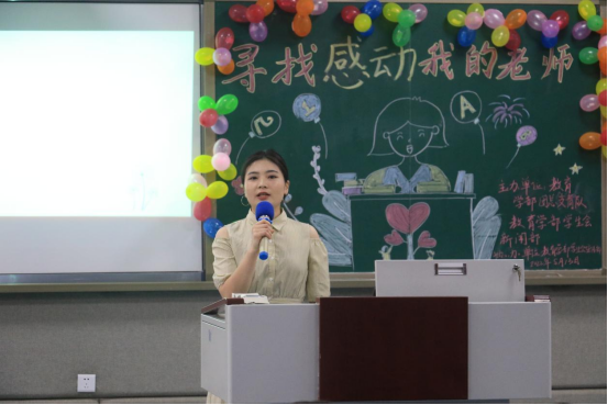 最后,刘薪对本次活动进行了总结,她说道:“寻找感动我的老师”是自2015年以来持续开展的活动,目的是为了让同学们能从中体会到“师德”的真正含义,永怀“感恩”之心,认真思考作为一名人民教师应具有的高尚品格,坚定从教信念。