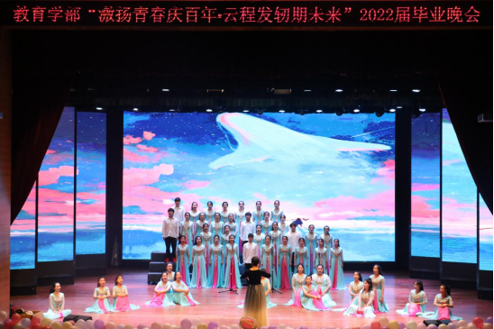 五四风雷,激荡百年,青春之火,赓续长存。2022年6月8日,教育学部在三平台演播厅举办了“激扬青春庆百年,云程发轫期未来”2022届毕业生晚会。教育学部全体教师和2022届毕业生参加了本次晚会。