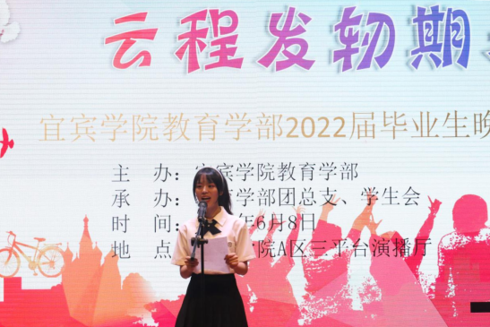 晚会在青春活力的开场舞中拉开序幕,镁光灯为舞台披上一层梦幻的光。教育学部部长何会宁致辞。他肯定了2022届学子们在疫情防控、志愿服务、专业学习、社会实践中展现出的社会责任感和价值追求,对毕业生们顺利毕业表示热烈祝贺,并期望同学们能不忘初心,做有信仰、有温度、有坚守的人。