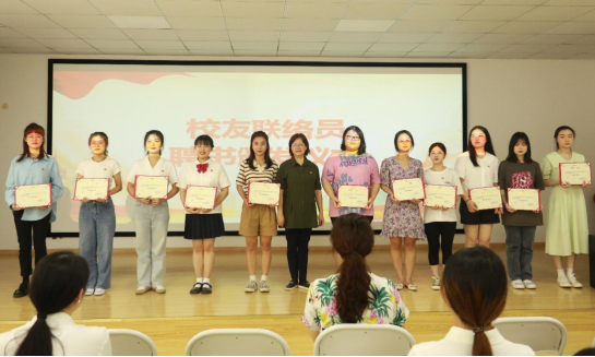 蒋泓洁主任为毕业生代表颁发“集团联络员”的荣誉证书,并以此希望在步入社会后,大家也能做好毕业生和母校之间的联络员,关注母校的新动态,心系母校。