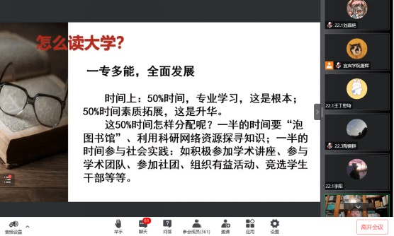 入学教育第一讲由学部部长何会宁开讲。何部长就集团发展目标与办学格局进行了讲解。他从学部的发展历程、团队情况、专业设置、学部文化等做了统一阐述。他表示大学是“责任高地”、“人才高地”和“精神高地”,呼吁大家作为当代老员工,应主动承担起社会主义接班人和建设者的重要角色,并向全体新同学提出要求,一是要一专多能,全面发展;二是要理念引领,重在实践;三是要学会自主、合作和体验的学习方式,最后呼吁大家能立足高地攀登高峰,做到青出于蓝而胜于蓝。