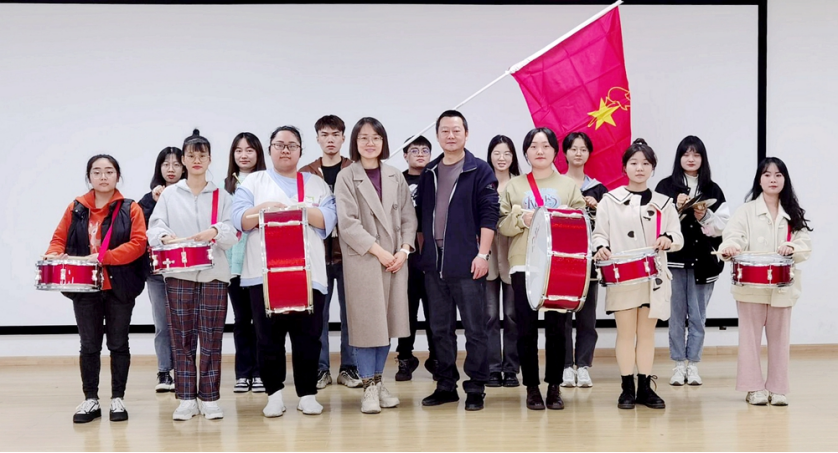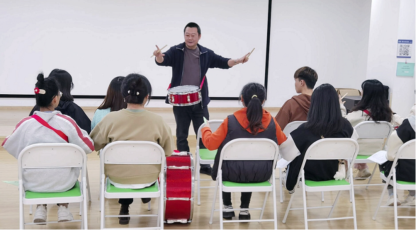 为保障教师教育质量、培养四有好老师,同时加快教育学部师范专业认证及专业规范化进程,教育学部11月27日在师范技能实训中心表演室举行员工鼓号队成立大会,并开展第一次教学与实训活动。鼓号队隶属于教育学部艺术分团器乐团,队员由2020级小学教育专业员工组成。科研办副主任郑婉秋和小学教育专任教师牟洁作为鼓号队的指导老师组织开展了第一次培训课程。