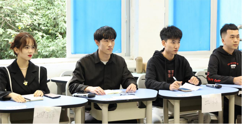 19日,半决赛于实训楼213进行,特邀法学与公共管理学部辩论队成员陈嘉鑫、李佳茜任评委。在一番机智风趣的辩论后,“建议你们退赛队”和“说的都队”2支队伍顺利晋级决赛。