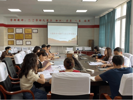 5月30日上午,教育学部党总支在博雅楼B506会议室召开深入开展学习贯彻习近平新时代中国特色社会主义思想主题教育专题学习及工作推进会,全体处科级干部、党支部书记、党支部委员参会。会议由党总支副书记(负责工作)刘薪主持。