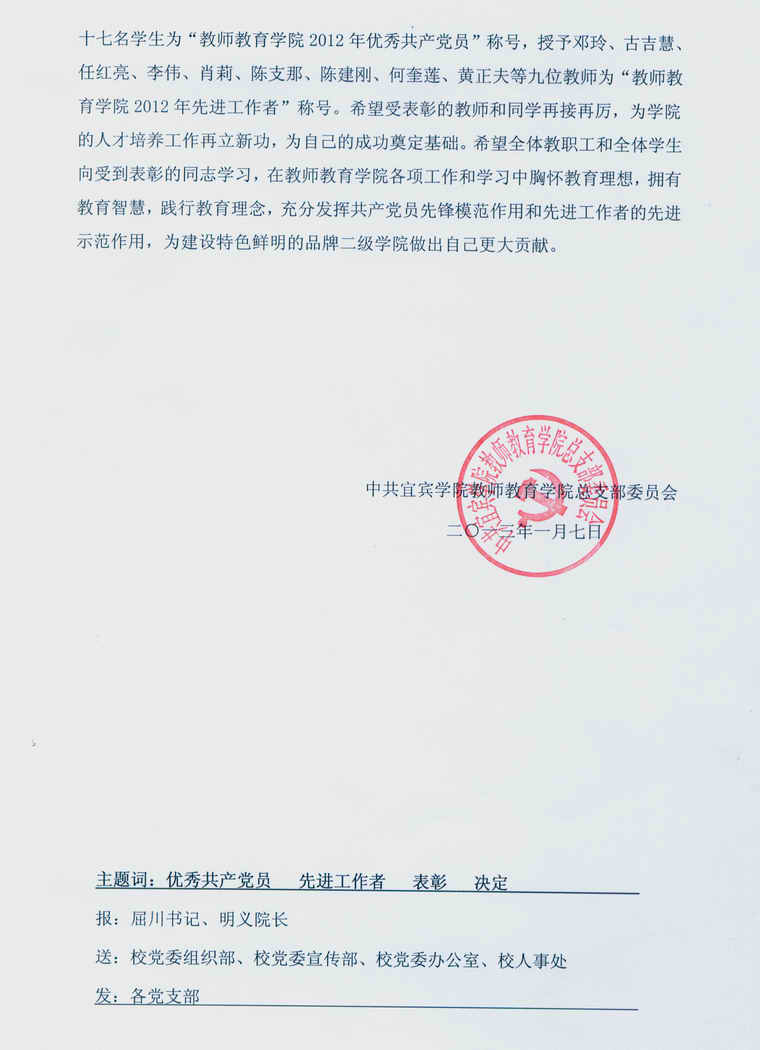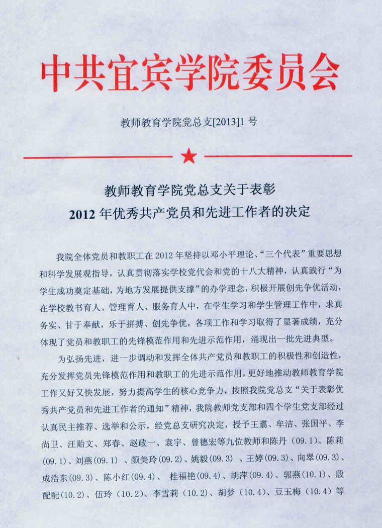 bv伟德国际1946党总支关于表彰2012年优秀共产党员和先进工作者的决定