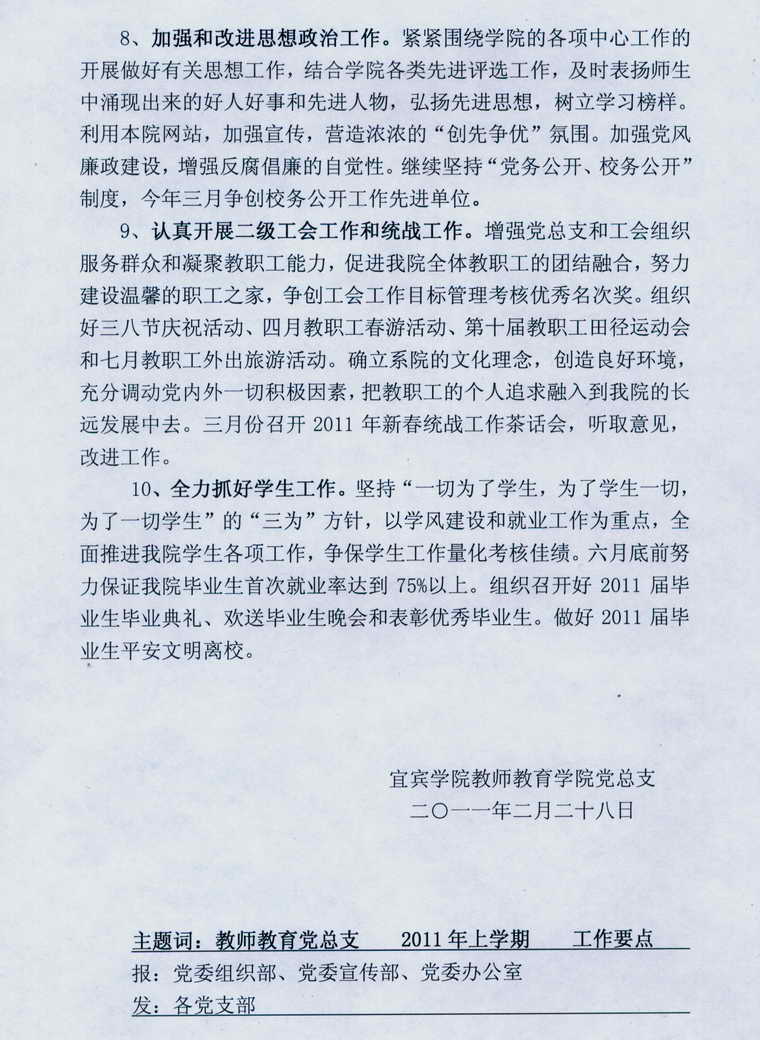 bv伟德国际1946bv伟德国际1946党总支2011年上学期工作要点