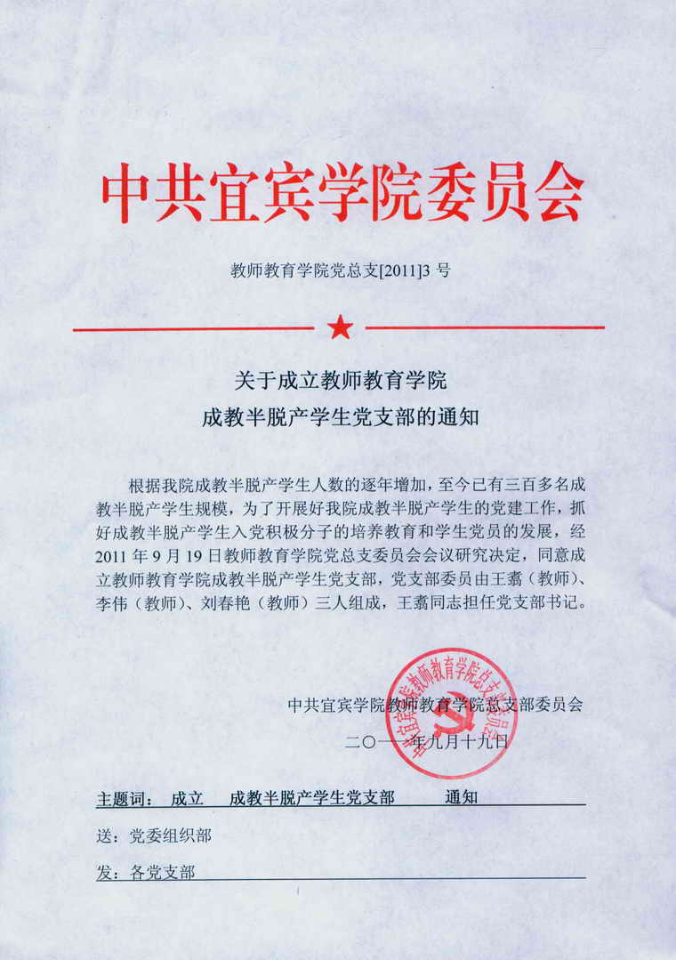 关于成立bv伟德国际1946成教半脱产员工党支部的通知