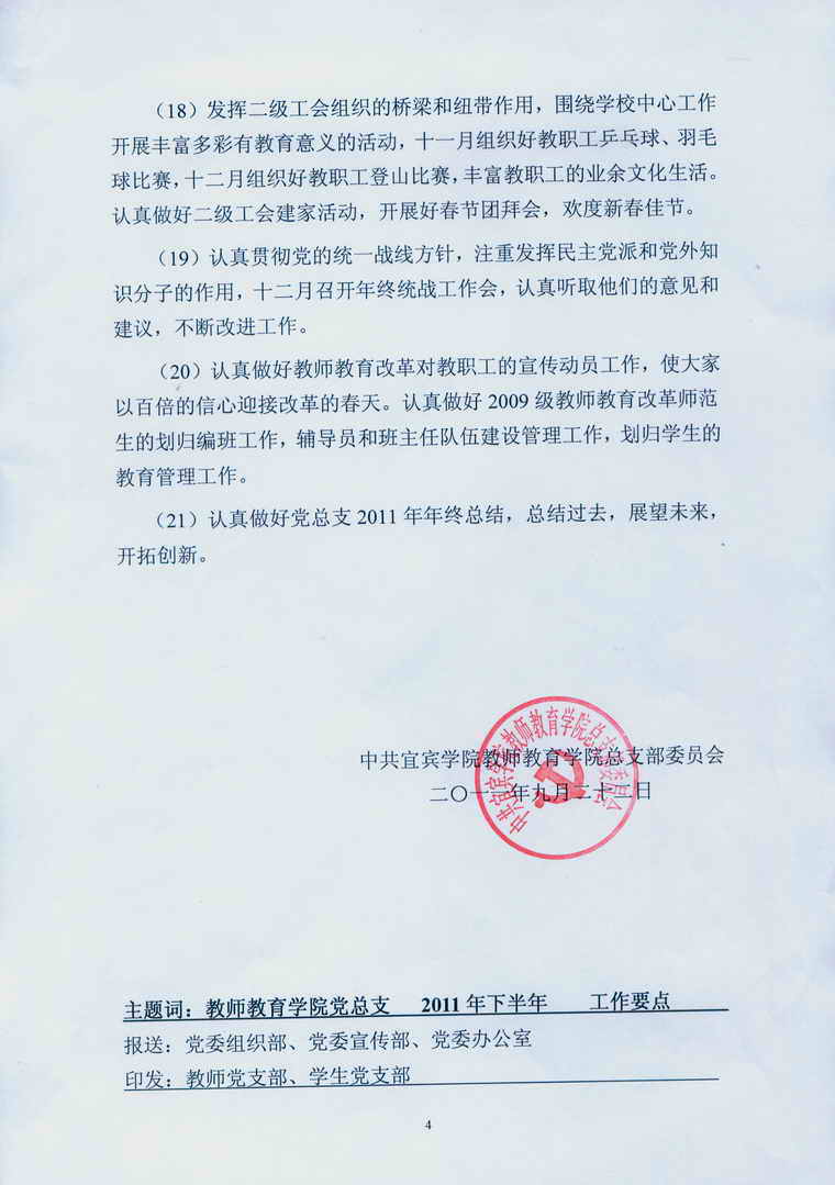 bv伟德国际1946党总支2011年下半年工作要点