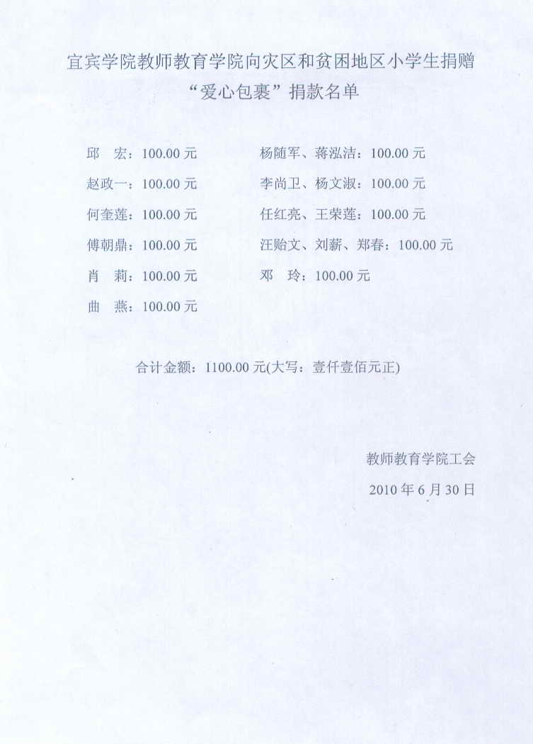 伟德国际1946源于英国向灾区和贫困地区小员工捐赠"爱心包裹"捐款名单