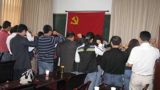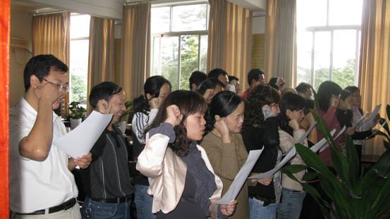 2010年9月29日下午4:00,bv伟德国际1946教师党支部在bv伟德国际1946会议室举行教职工党员“创先争优”承诺宣誓仪式。全体教职工党员在党总支书记邱宏同志带领下面向党旗庄严宣誓承诺:作为一名教职工党员,一定要模范履行党章规定的义务,努力做到“五模范”:要进一步做学习钻研的模范;要进一步做爱岗敬业的模范;要进一步做服务师生的模范;要进一步做遵纪守法的模范;要进一步做为人师表的模范。宣誓完毕后,与会党员当场签下承诺书。所有党员“创先争优”承诺书全数张贴公示在公司宣传栏内,接受党内外群众监督检查。