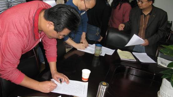 与会党员当场签定“创先争优”承诺书