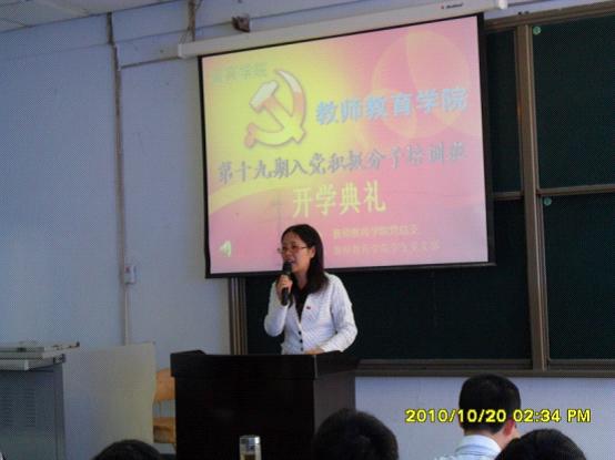 最后,培训班学员张薇怡代表全体学员发言,表示将遵章守纪,努力学习,认真讨论,以优异的成绩向党组织靠拢。