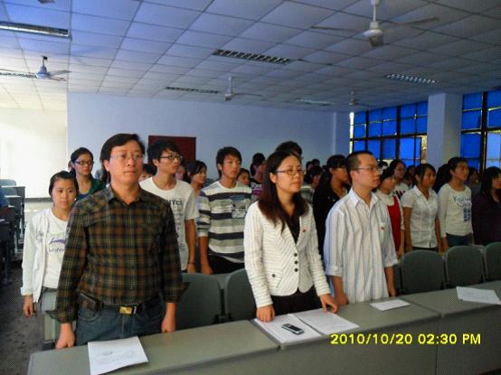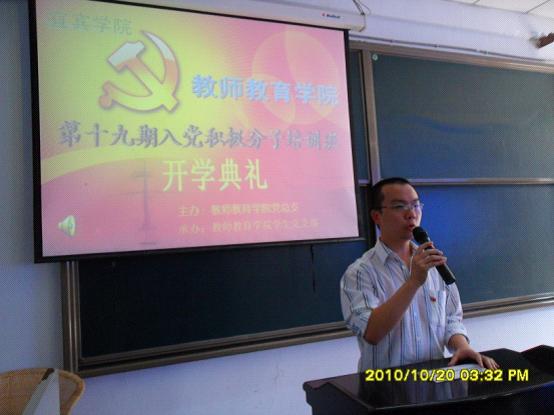 2010年10月20日下午2:30,bv伟德国际1946党总支在一教楼201教室隆重举行党校第19期入党积极分子培训班开学典礼。公司党总支书记邱宏、党总支副书记赵政一、团总支书记刘薪、办公室副主任汪贻文、党校培训班班主任王珺以及十九期入党积极分子培训班学员76人参加了开学典礼。