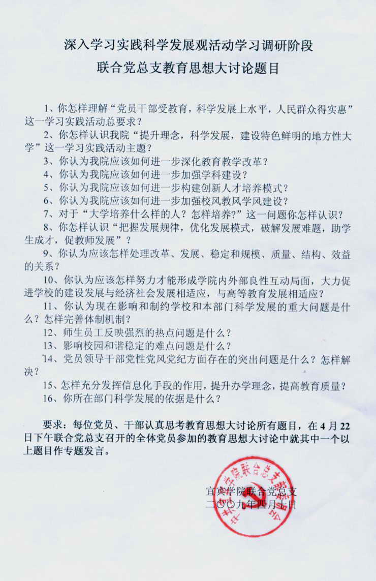 深入学习实践科学发展观活动学习调研阶段联合党总支教育思想大讨论题目
