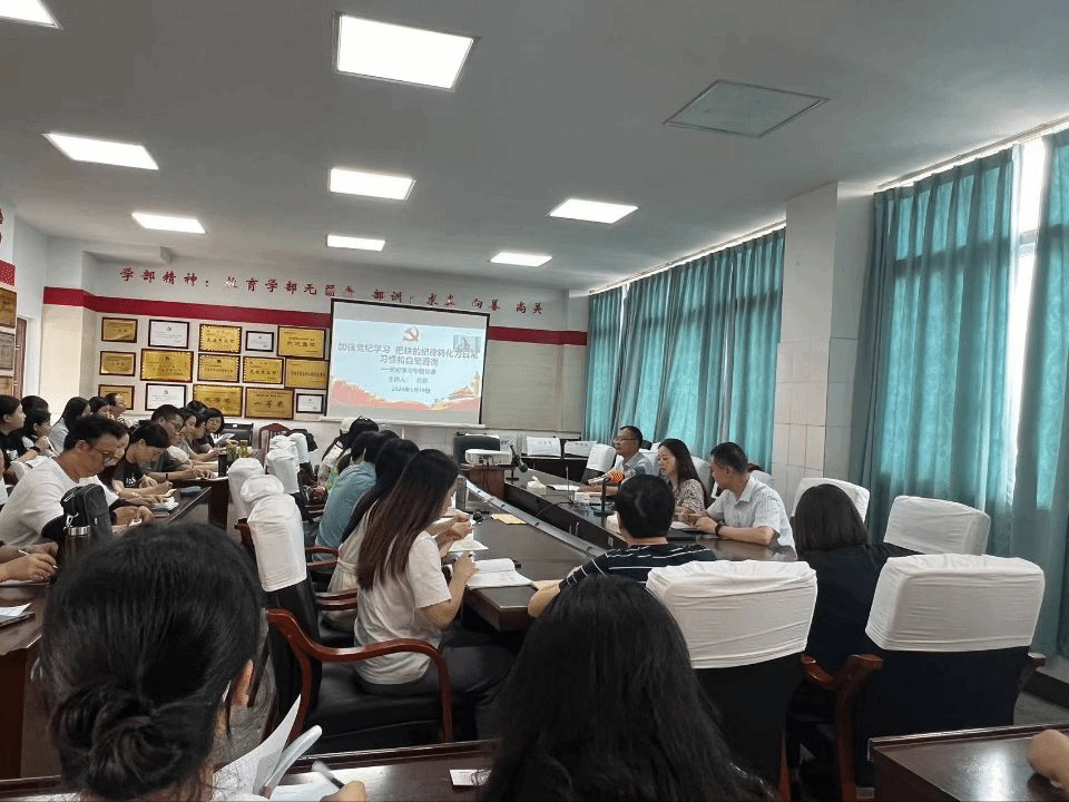 6月19日下午,bv伟德国际1946在博雅楼B506会议室召开“加强党纪学习 把铁的纪律转化为日常习惯与自觉遵循”党纪学习专题党课。教师教育学院党委书记刘薪主持会议,全体师生党员参会。