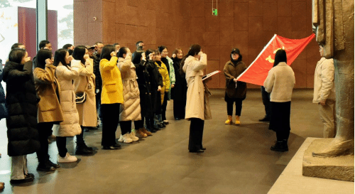 在党委书记刘薪的带领下,党员同志们在江竹筠塑像前面向党旗庄严宣誓,重温入党誓词。笔直的身影、紧握的拳头,现场瞬间变得庄重起来,铿锵有力的誓言回响在纪念馆上空。