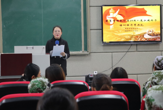 首先、是党总支副书记刘薪同志讲话,刘书记表示培养入党积极分子是为了保证党的血液鲜活、更是我们党长期性建设的工作。并从入党积极分子培训班的必要性和重要性两个方面进行详细阐述,对党校第39期积极分子培训班学员提出了宝贵的建议,也代表学部及自身表达了期许。