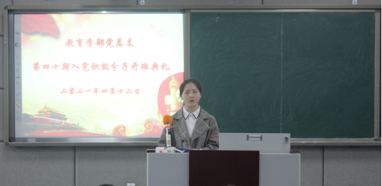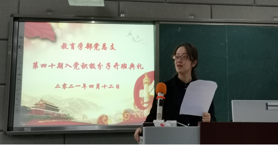 我部为强化入党积极分子对党的认识,明确入党目的,端正入党动机,增强“四个意识”、坚定“四个自信”、做到“两个维护”。成为一名讲政治、有信念,讲规矩、有纪律的入党积极分子。教育学部党总支于2020年4月12日13:00在博雅楼201室召开了第40期入党积极分子培训班开班典礼。