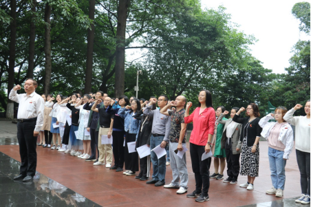 在赵一曼塑像前,党员同志们排成两列,在总支书记何会宁带领下重温入党誓词。笔直的身影、紧握的拳头,现场瞬间变得庄重起来。铿锵有力的誓言回响在纪念馆上空,引得游人驻足观看,有人甚至用手机留下感人的画面。