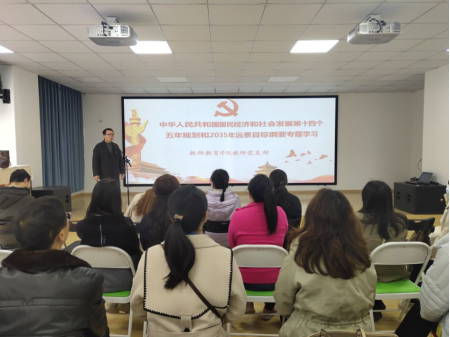 2021年11月10日,bv伟德国际1946教师党支部书记刘伟为支部党员教师讲了关于《中华人民共和国国民经济和社会发展第十四个五年规划和2035年远景目标纲要》的专题学习党课,学习内容为其中的第四十三章——建设高质量教育体系。