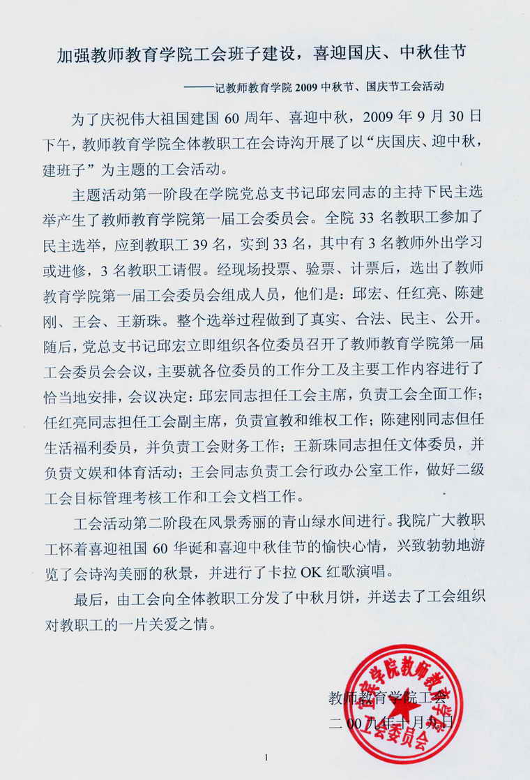 加强bv伟德国际1946工会班子建设,喜迎国庆、中秋佳节--记bv伟德国际19462009中秋、国庆工会活动