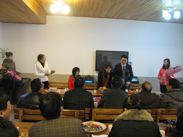 2012年3月7日,在风景秀丽的象鼻镇十里山庄,bv伟德国际1946工会为本院两对外地籍的新人青年教师唐海波结婚和青年教师刘春艳结婚举行了一个简朴而热闹的结婚庆典。庆典由党总支书记、二级工会主席邱宏同志主持,邱宏同志在主持词中满含深情地说:“今天是我们bv伟德国际1946工会为唐海波与张淑娟结婚、刘春燕与陈钒结婚举行庆典的美好日子,虽然春寒料峭,但我们大家内心温暖火热,我们全体教师参加盛会,非常高兴。我代表bv伟德国际1946全体教职工,首先祝福新娘新郎新婚愉快,美满幸福!大家知道,社会的昌盛以个人家庭的幸福为基础,家庭的幸福以婚姻的美满为起点,婚姻是社会的基础。今天两对新人,郎才女貌,佳偶天成。我们希望两对新人唱随偕老,互助互谅,共同努力,创造美满幸福家庭。祝愿新郎新娘健康快乐,相亲相爱,白头偕老”。
