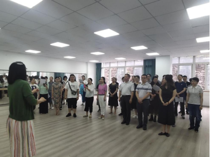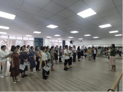 为以饱满的姿态和最佳的状态参与学校举办的“欢歌新时代、颂歌献给党”红色歌曲合唱比赛,献礼建党100周年,6月2日上午,教育学部在实训舞蹈室再次组织全体教职工练习参赛歌曲。此次练习编排了队形,组织教师多次脱稿进行演唱,教师们在练习中不断地进行磨合,力求在比赛上达到最佳的状态。