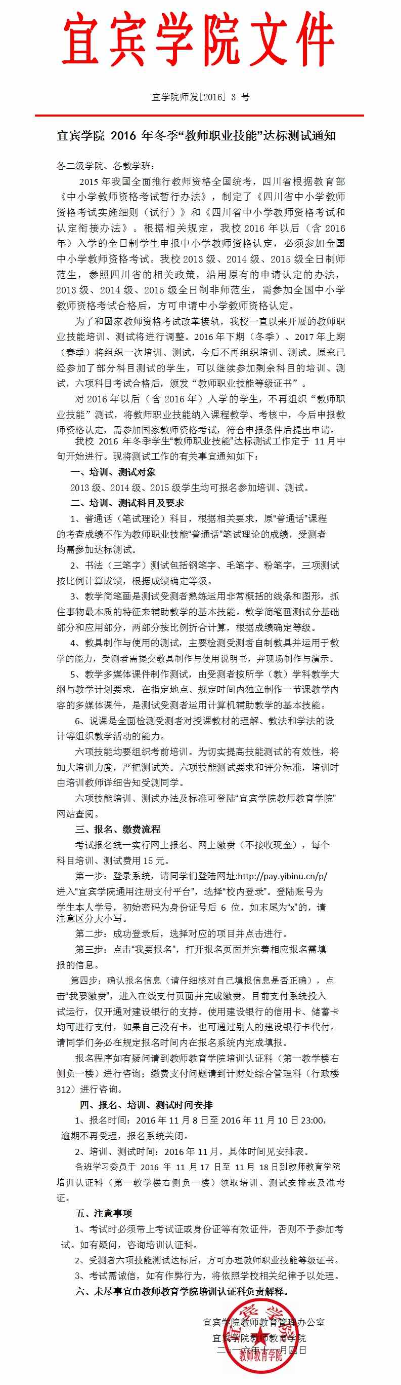 bv伟德国际1946 2016 年冬季“教师职业技能”达标测试通知