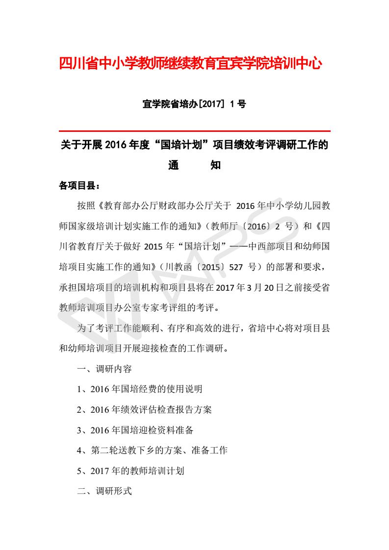 关于开展2016年度“国培计划”项目绩效考评调研工作的通知