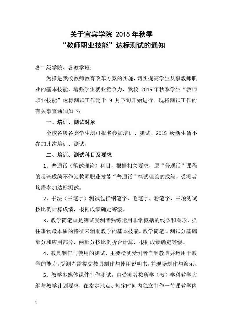 关于bv伟德国际19462015年秋季”教师职业技能“达标测试通知