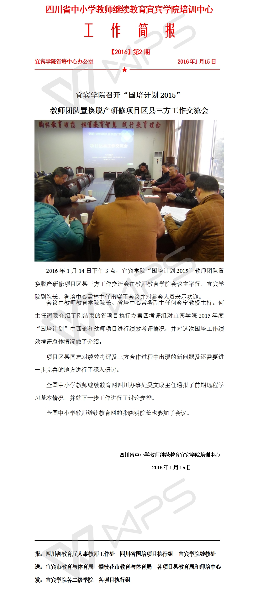 bv伟德国际19462015年度“国培计划”中西部和幼师项目接受四川省“国培计划”项目执行办公室考评
