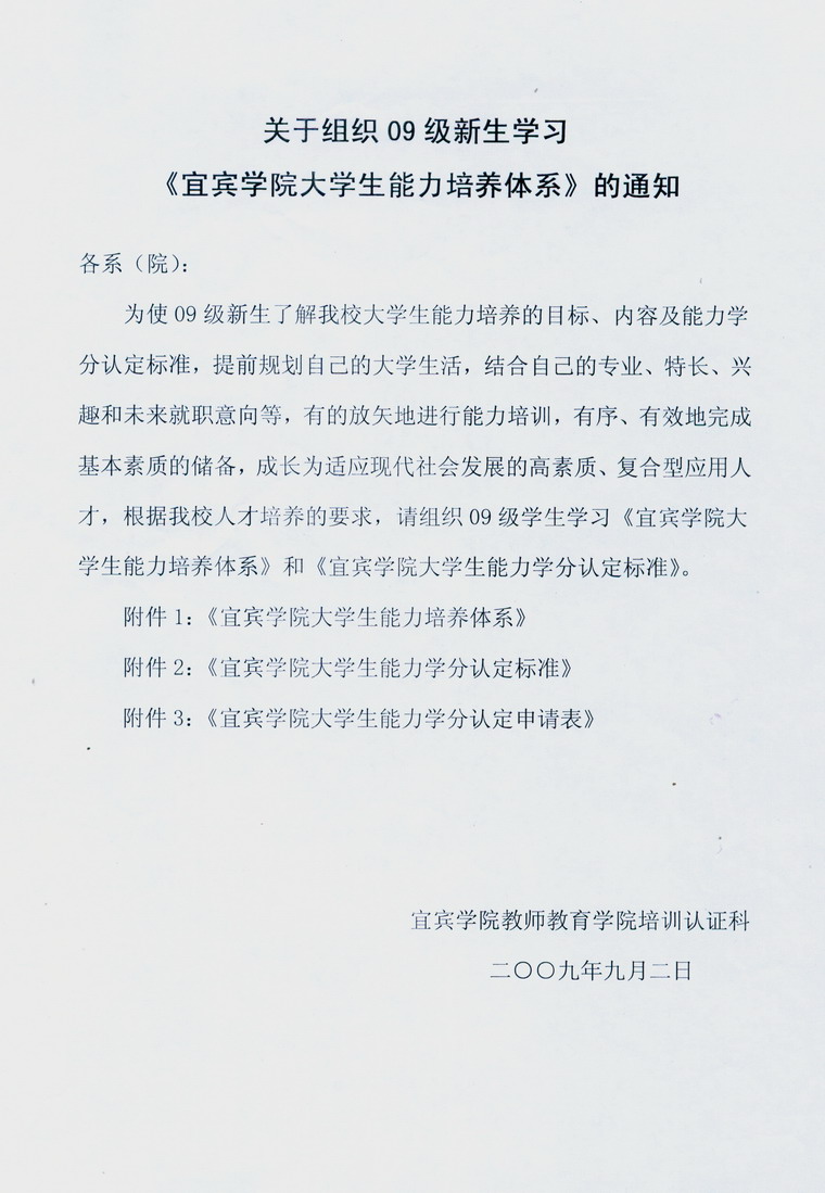 关于组织09级新生学习《bv伟德国际1946老员工能力培养体系》的通知