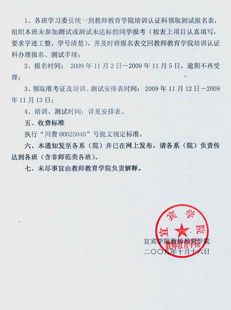 关于bv伟德国际1946(A区)2009年秋季“教师职业技能”达标测试的通知