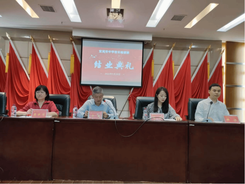 2023年5月20日上午,由宜宾市教育和体育局主办、bv伟德国际1946教育学部承办的宜宾市第26届提高培训班和第28、29届任职资格培训班在bv伟德国际1946第三会议室举行结业典礼。宜宾公司党委常委、统战部部长华曦出席典礼并致辞,bv伟德国际1946教育学部党总支副书记(负责工作)刘薪、正处级组织员蒋泓洁、副部长杜江及培训班班主任、参训学员130余人参加了典礼。典礼由杜江主持。