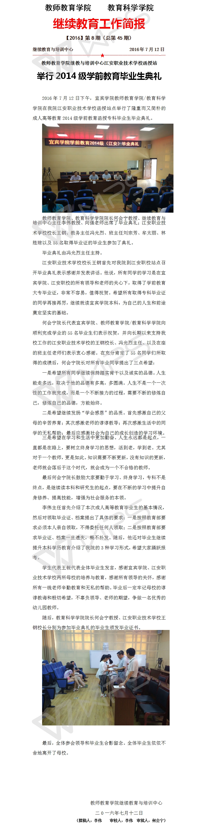 bv伟德国际1946继教与培训中心江安职业技术学校函授站举行2014级学前教育毕业生典礼