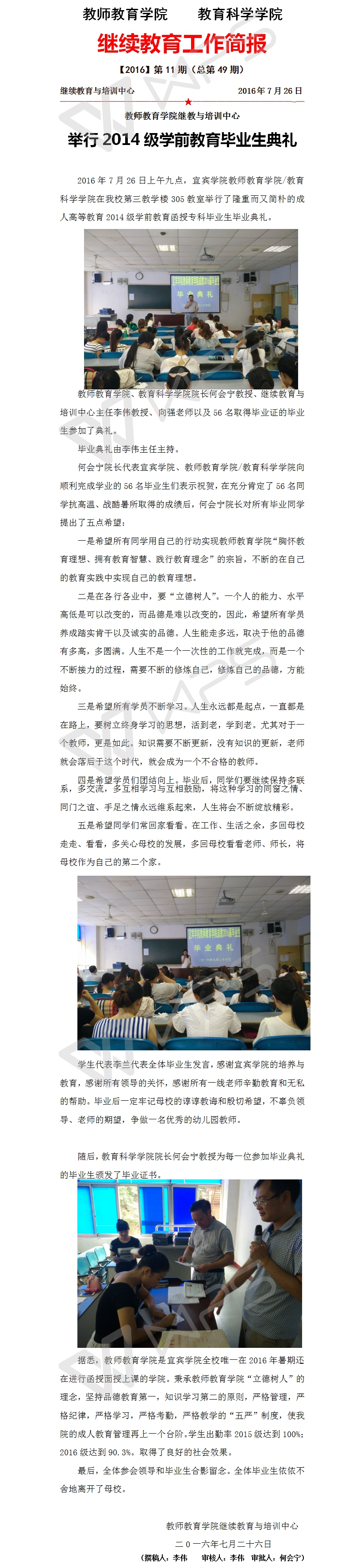 bv伟德国际1946继教与培训中心举行2014级学前教育毕业生典 礼