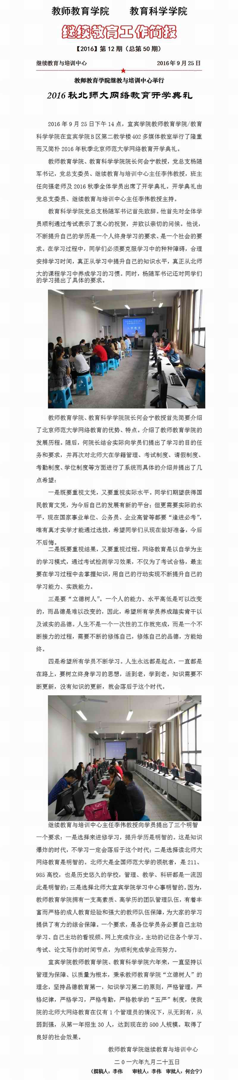 bv伟德国际1946继教与培训中心举行2016秋北师大网络教育开学典礼