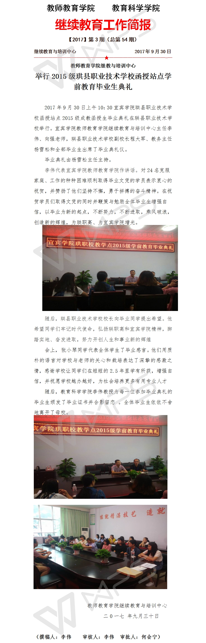 bv伟德国际1946继教与培训中心举行2015级珙县职业技术学校函授站点学前教育毕业生典礼