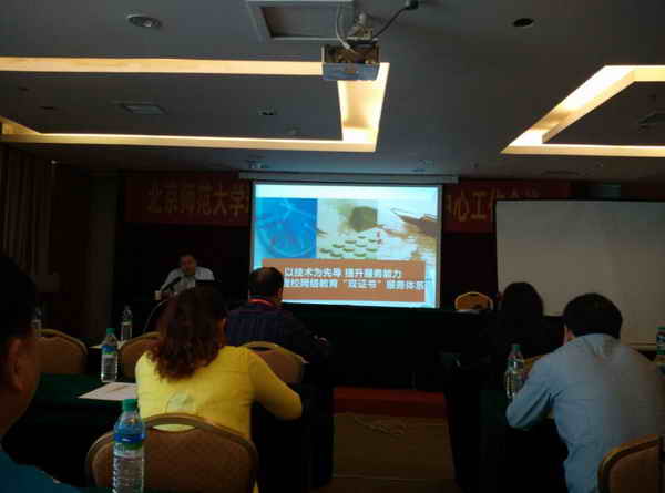 会议由北京师范大学继续教育与教师培训学院副经理亓俊国“以技术为先导,提升服务能力——构建公司网络教育’双证书’服务体系”的主题发言。