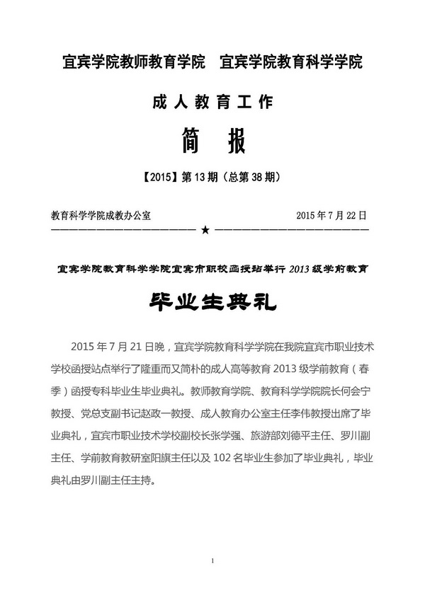 伟德国际1946源于英国bv伟德国际1946教育科学学院成人教育工作简报【2015】第13期(总第38期)