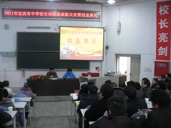 2011年12月20日上午11点,宜宾市2011年中学董事长培训班表彰大会暨结业典礼在宜宾市四中第一学术报告厅隆重举行。