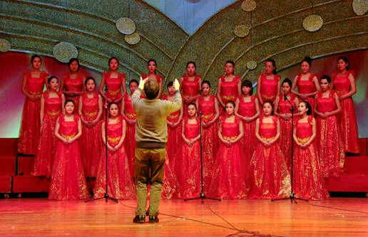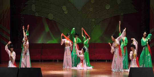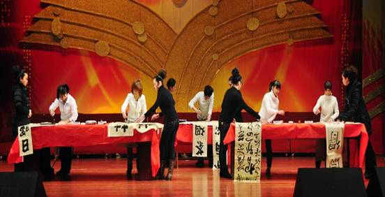 随着开场舞的音乐,此次晚会也拉开了帷幕。晚会正式开始,共安排了15个节目,一首新生的女声小合唱《半个月亮爬上来》其婉转、优美、嘹亮的歌声响彻了整个演播厅,把全场观众带到了意境幽幽、皓月当空的朦胧夜景。国培学员的傣族舞《雨中花》展现了傣族姑娘的温柔、神秘、美丽而又大方的日常生活场景。小品《快与慢》让大家体会到中国语言文化的独特魅力。充分感受和领略传统国粹——书法魅力的《现场书法展》,在方寸之间让观众陶醉其中。舞蹈《彩佣》展现了千年以前的色彩与线条的惊艳之美。