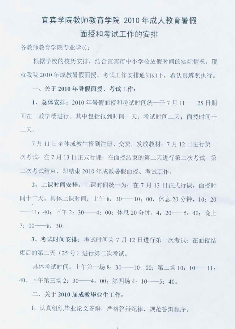 伟德国际1946源于英国2010年成人教育暑假面授和考试工作的安排