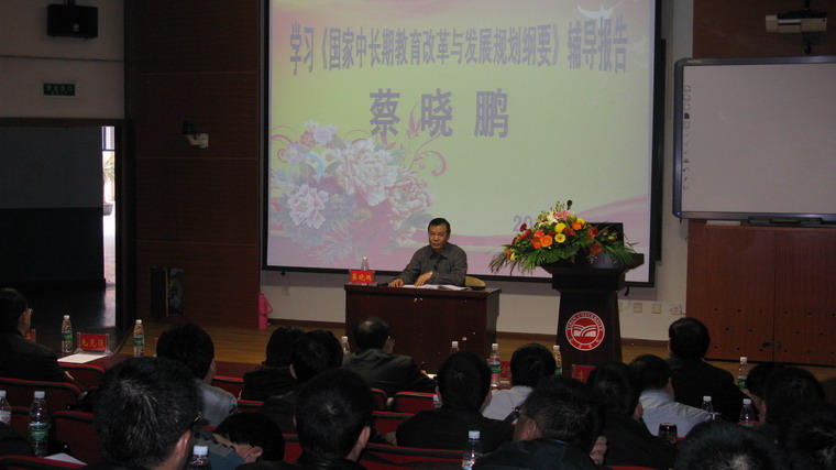 开班典礼后,蔡晓鹏局长做了学习《国家中长期教育改革与发展规划纲要》的辅导报告。整整3个小时精彩而又幽默、全面而又深透的解读,让参训学员深受启发,受益匪浅,产生影响深远的轰动,为培训班开了个好头。