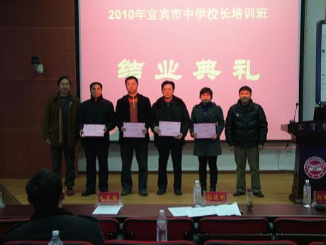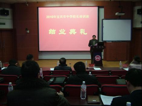 宜宾市教育局机关党总支副书记古正常先生代表市教育局和省培中心宣读了对优秀学员干部和优秀学员的表彰决定,孙远明、毛克强等为优秀干部和学员颁发了获奖证书。