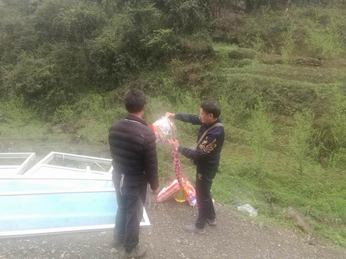 告别老陶,我们又前往何崇书家,为他带去大家的问候。我们同样给他送去了油和米,还给他的孩子买了学习用具和一些零食。杨书记还专门送去了大半新的门窗和椅子,助他进一步改善生活环境。